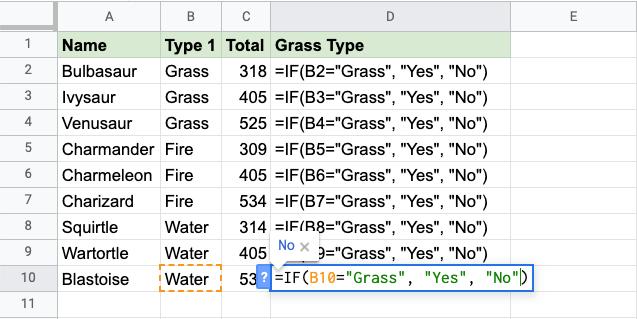 Since the value in cell B2 is "Grass", the condition is true and the function will return "Yes".