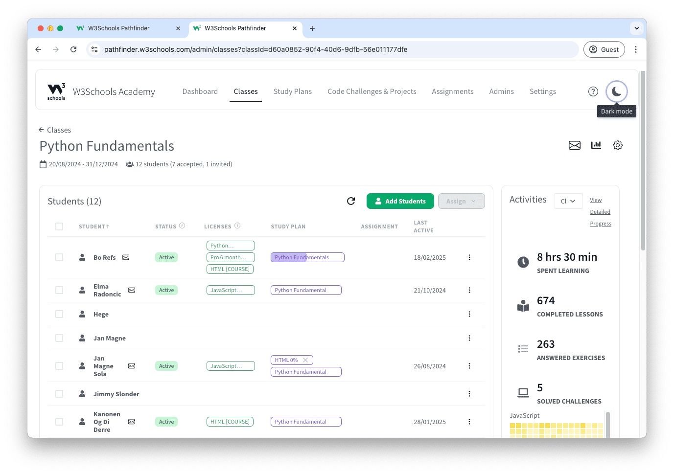 - Assign the Python course to your class