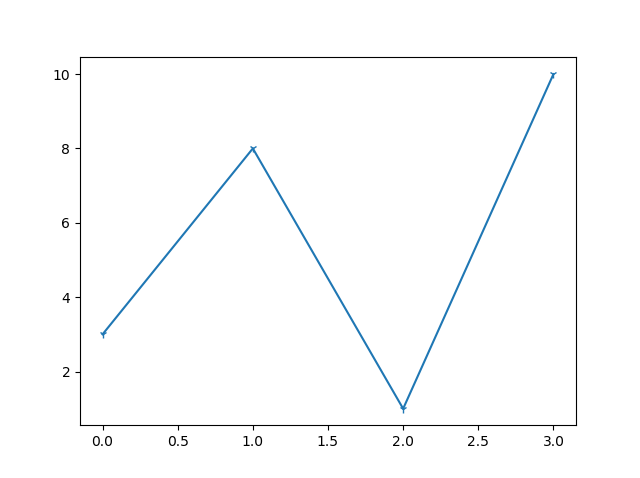 #Three lines to make our compiler able to draw: import sys import matplotlib matplotlib.use('Agg') import matplotlib.pyplot as plt import numpy as np ypoints = np.array([3, 8, 1, 10]) plt.plot(ypoints, marker = '1') plt.show() #Two lines to make our compiler able to draw: plt.savefig(sys.stdout.buffer) sys.stdout.flush()